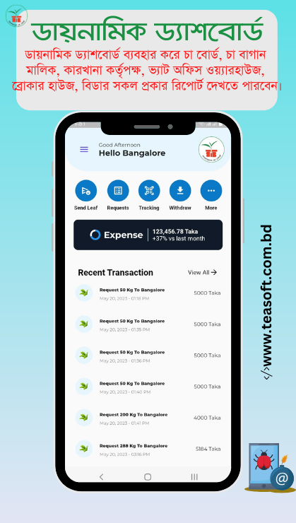 Plus d'informations ও জনপ্রিয় স্বাস্থ্যকর পানীয়। Plus d'informations ঊনিশ শতকের গোড়ার দিকে। Plus d'informations টগ্রামে ১৮৪০ খ্রীস্টাব্দে। Plus d'informations বাণিজ্যিকভাবে চা বাগান উন্মুক্ত করা হয়। বাংলাদেশের বর্তমানে ৩টি অঞ্চলে চায়ের ব্যাপ ক চাষ হয়ে থাকে ; যেমন- সুরমা ভ্যালীস্থ বৃহত্তর সিলেট এলাকা, হা Plus d'informations Plus d'informations Plus d'informations Plus d'informations র হেক্টর জমিতে প্রতি বছর ৯৬.৫০ মিলিয়ন কেজি চা উ ৎপাদন হচ্ছে। চা আবাদী ও উৎপাদনের এ ধারা ক্রমবর্ধমান। সালের মধ্যে দেশের ১৪০ মিলিয়ন কেজি চা উৎ Plus d'informations লসভাবে কাজ করে যাচ্ছে। দেশের বড় চা বাগানের পাশাপাশি সমতলে ক্ষুদ্রা য়তন চা বাগান দিন দিন বৃদ্ধি পাচ্ছে। ২০২১ সালে উত্তরবঙ্গের পঞ্চগড়, ঠাকুরগাঁও, লাল মনিরহাট, নীলফামারী ও দিনাজপুর জেলায় ধ১ ধাজার ৪ শত একর জমি থেকে ৭ লক্ষ ৩৫ হাজার কেজি সবুজ চা পা Plus d'informations Plus d'informations ে। Plus d'informations হস্রাধিক ক্ষুদ্রায়তন চা বাগান ও ২৫টি চা কারখা না চলমান রয়েছে যাদের প্রতিদিনের কাঁচা পাতা, ত ৈরি চা ও ডেসপাসের স্বচ্ছ/সুস্পষ্ট তথ্যের অভাব র দরুন চায়ের প্রকৃত তথ্য পাওয়া যায়না। সাধারনত চা উৎপাদনের তথ্যগুলি মাসভিত্তিক চা ব াগান/কারখানাগুলি হতে সংগ্রহ করা হয় এবং সে মোত াবেক তথ্যগুলি সন্নিবেশিত করা হয়। সিলেট ও চট্টগ্রামের বেশিরভাগ চা বাগানের নিজস ্ব কারখানা রয়েছে। Plus d'informations Plus d'informations এখানকার প্রায় সকল চা কারখানা'ই বটলিফ চা কারখ ানা এবং আধুনিক প্রযুক্তিতে তৈরি। Plus d'informations অনেক বেশি। পঞ্চগড়ের একেকটি চা কারখানায় একের অধিক সিটি সি লাইন/সেট রয়েছে। Par exemple াথে অনেক সময় বাৎসরিক উৎপাদনের সামঞ্জস্যতা পা Plus d'informations Plus d'informations ে এবং সঠিক সময় সঠিক তথ্যও উপস্থাপন কর নধ। ফলে বাৎসরিক, কাঁচা পাতা উৎপাদন, তৈরি চায়ের উৎ Plus d'informations না। চা আইন ২০১৬ অনুসারে দেশের সকল চা বাগানর ধৎপা দিত চা নিলামে বিক্রয় নিশ্চিত করতে হবে। Plus d'informations ভিত্তি করে সরকার ভ্যাট ও চা বোর্ড সেস মানি পেয় থাকে। Plus d'informations Plus d'informations র অপতৎপরতা থাকে। Plus d'informations রকার রাজস্ব এবং চা বোর্ড সেস মানি থেকে বঞ্চিত হ চ্ছে। এতে সরকার বছরে বিপুল পরিমাণ রাজস্ব হারাচ্ছে। চা বোর্ডও হারাচ্ছে উপকর। Plus d'informations Plus d'informations ্রেরণ নিশ্চিতকরণ ও সঠিক সময়ে সঠিক তথ্যাদি পেত ে বাংলাদেশ চা বোর্ড কর্তৃক 'টি-সফট' নামক একটি ওয়়ওয়়ওয়় Plus d'informations ার/অ্যাপ তৈরির উদ্যোগ নেয়া হয়েছে। Plus d'informations কারখানায় পাইলটিং করা যেতে পারে। Plus d'informations পারে। দেশের সকল চা বাগান/ক্ষুদ্রায়তন চা বাগানের প্ Plus d'informations িত তৈরি চা, ডেসপাসের সকল তথ্যাদি সফটওয়ারে অন্ তর্ভুক্ত থাকবে। প্রস্তাবিত সফটওয়্যার দেশের সকল চা কারখানায় স্থাপন করা গেলে অকশনে চা প্রেরণ নিশ্চিত হবে ও Plus d'informations ফলে কারখানা কর্তৃক উপকর ফাঁকি দেওয়ার সম্ভাব না থাকবেনা ও চা বোর্ড সঠিক তথ্য পাবে ও উপকর আদ༦ র মা