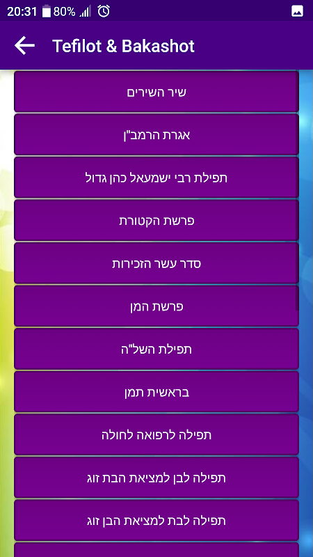 ● Sélection de prières et de vertus pour tout et pour tout (y compris: Cantique des cantiques, Parshas Haman, Bereshit Taman, Prières médicales, Ascendance, Subsistance, Pairing, Success, Praying for the Road, Prayer for State Peace and more ....).