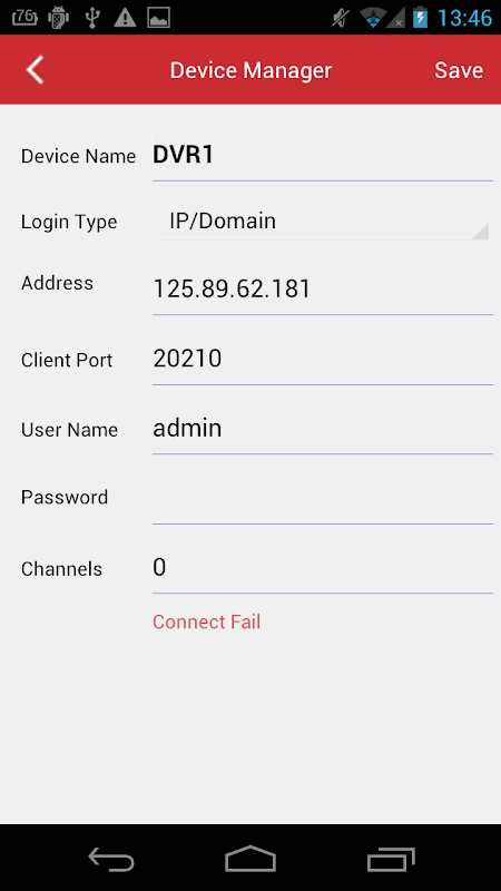 You need to add The demo device in Config page first of review. Please setup the device parameters and save as below: