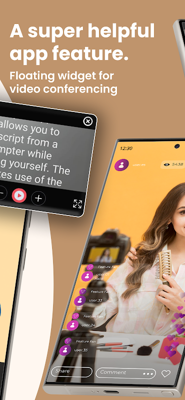 Vous lisez un script pré-préparé tout en vous enregistrant à l'aide de la caméra avant/arrière. Appuyez simplement sur enregistrer et lisez le script pendant qu'il défile sur l'écran. Au fur et à mesure que le script défile à côté de l'objectif de la caméra, vous avez l'air de parler à votre public alors que vous lisez réellement !