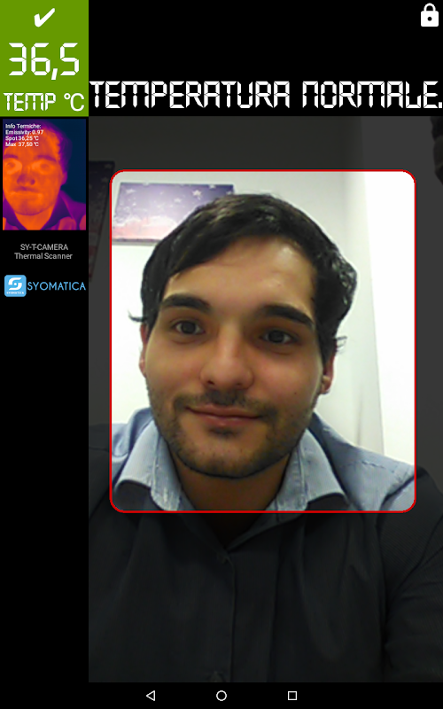 Misura la temperatura a distanza senza contatto con il Termoscanner Syomatica.