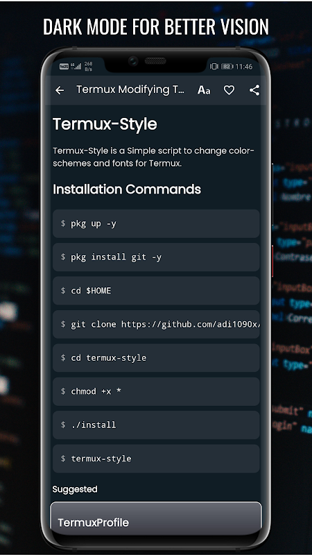 Dans cette application, nous fournissons des commandes d'installation pour installer divers outils dans termux.