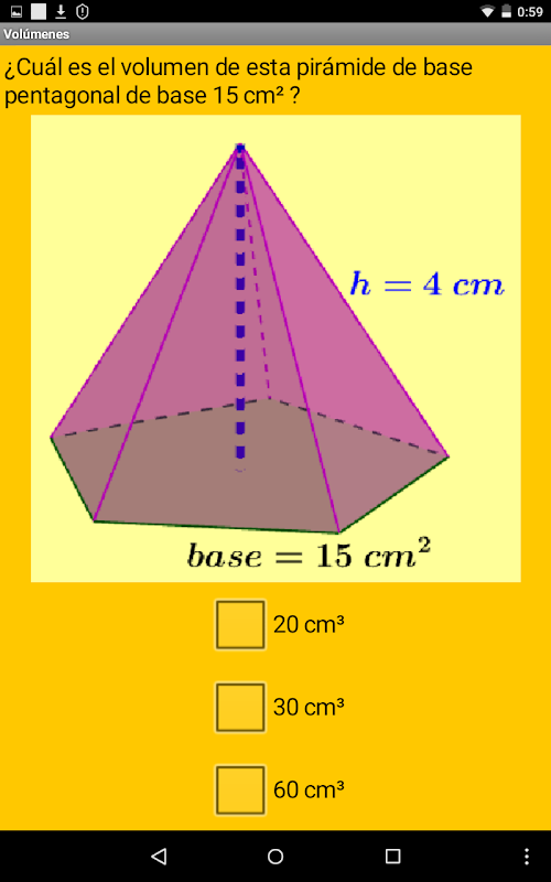 Test de 20 preguntas sobre volúmenes y superficie de cuerpos geométricos