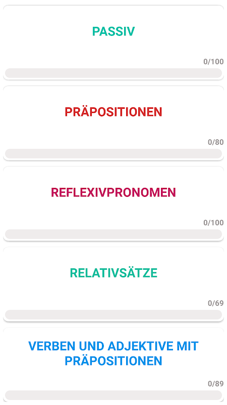 Dans cette application, vous pouvez trouver des exercices de niveau supérieur à la grammaire allemande. La grammaire est expliquée de manière simple et avec de nombreux exemples. Les exercices tâches les plus importantes et exercices A1, A2, B1, B2, C1