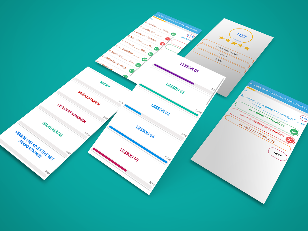 Avec cette application, vous pouvez faire des exercices en allemand rapidement. Exercices amusants de vocabulaire et de grammaire. Essayez maintenant disponible gratuitement!