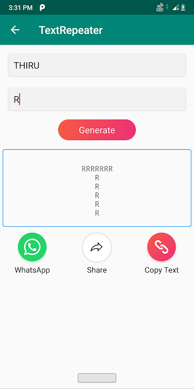 Repeated text, If you want to send a single message different styles or repeated times, you can achieve with this app. All the text utilities can be done with this app.