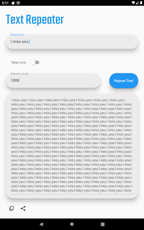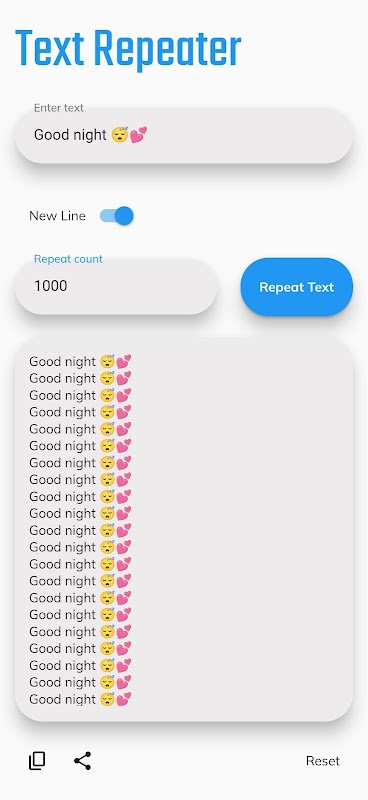 🔄 Répétitions rapides et faciles : Tapez votre texte, sélectionnez le nombre de répétitions et laissez Text Repeater gérer le reste. Dites bonjour à la duplication sans effort !