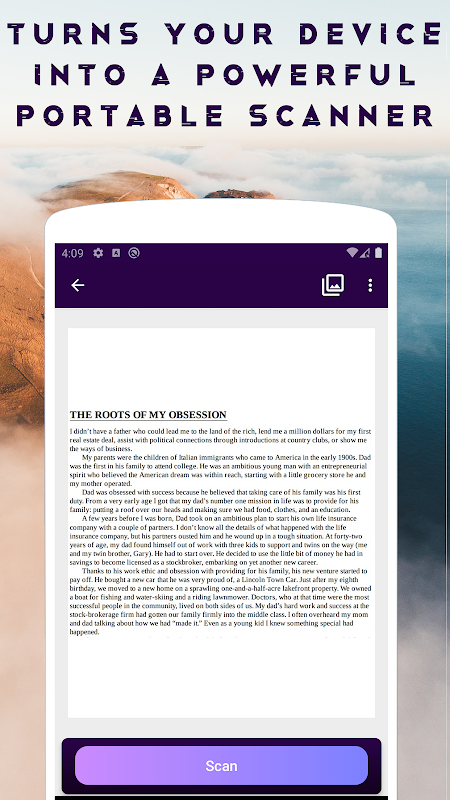 L'application de numérisation de texte transforme votre appareil en un puissant scanner portable qui reconnaît automatiquement le texte (OCR) et vous permet d'enregistrer dans plusieurs formats de fichiers, y compris PDF et TXT.