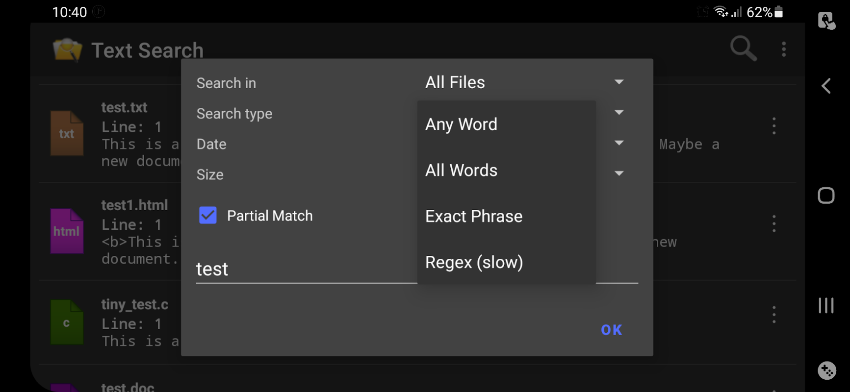 Text Search est un outil de recherche pour vos appareils Android qui vous permet de rechercher rapidement dans vos fichiers PDF, ebooks et Word. Dispose d’une interface utilisateur simple avec un indexeur incroyablement rapide.
