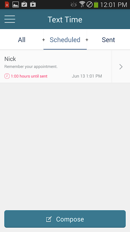Text Timer allows you to send texts to any contact at any time! Schedule texts or sms hours, days, months, years, or even minutes away with the ability to send to a group or individual!