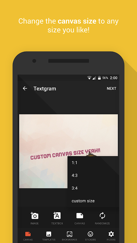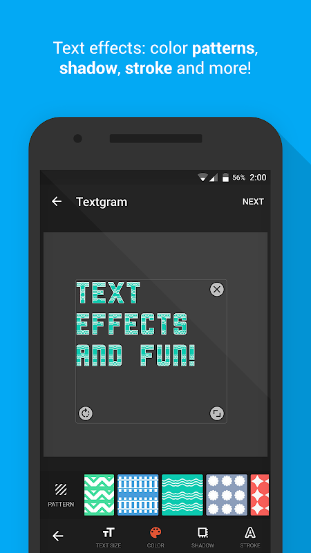 It also allows you to write on top of your photos and add stickers, frames, filters and other stuff. Textgram Store contains lots of free backgrounds, frames and fonts that you can download and use.
