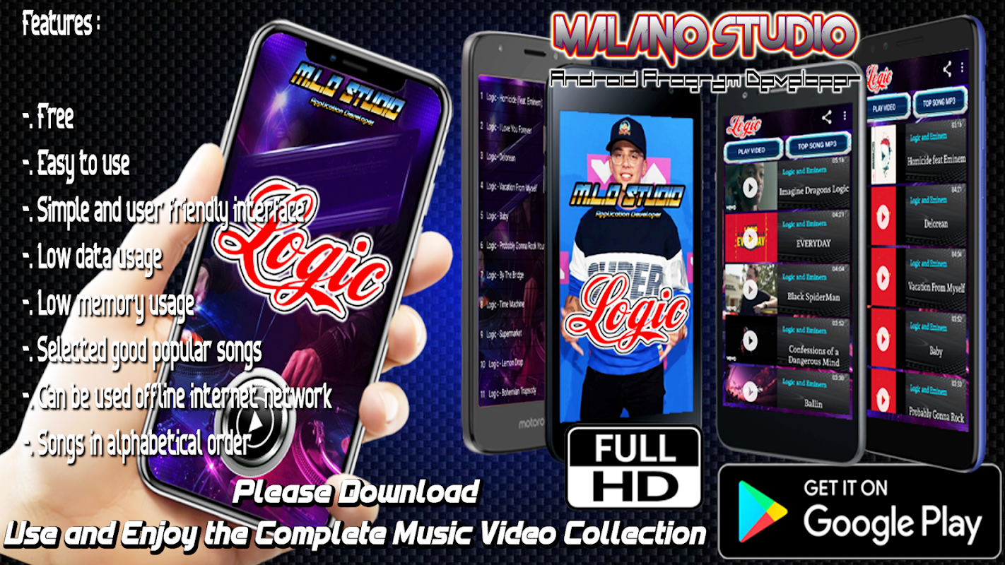 Thanks to this Logic Songs application, you will have the opportunity to listen the most popular songs from Logic in one click instantly and with good quality.