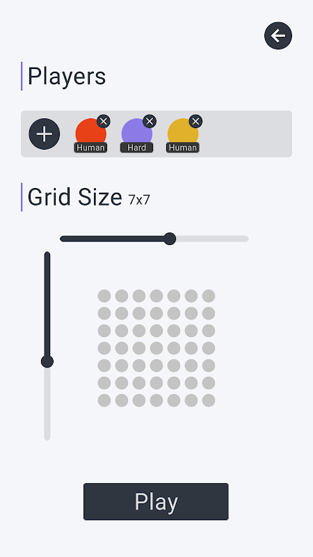 Agrandissez la grille pour jouer avec plus de joueurs ! Le jeu devient vraiment complexe à mesure que vous jouez contre plus de joueurs. Réglez la grille à 10 x 10 et faites jouer les IA les unes contre les autres : c'est un spectacle.