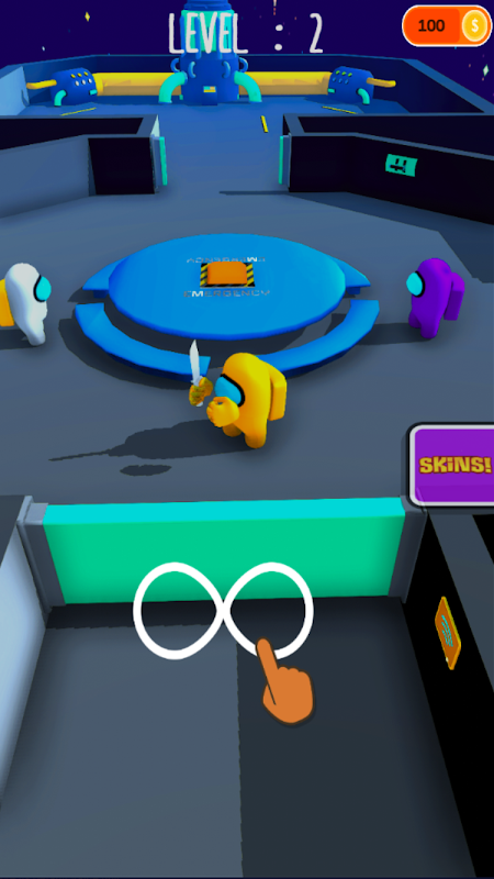 - Hold and drag to move around the ship, kill the crewmates, and sabotage the objects.