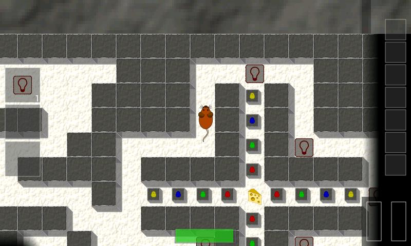 Une carte du labyrinthe apparaît lorsque vous appuyez sur le bouton de pause où vous pouvez voir votre position (le jaune) et le fromage (la partie verte).