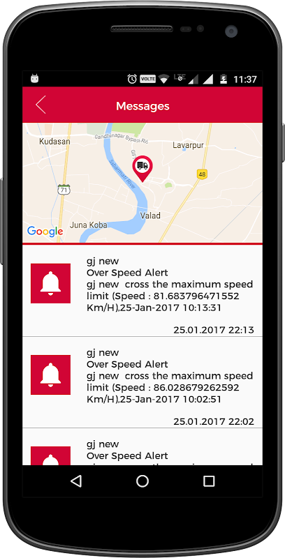 * Obtenir notification pour les alertes comme Over Speed, Ingition ON / OFF, Geofence IN / OUT Alertes etc