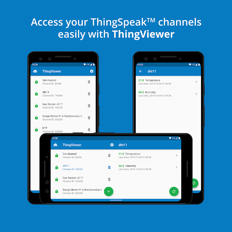 Avec ThingViewer, vous pouvez facilement accéder et visualiser les données des canaux ThingSpeak ™. L'application prend en charge les canaux publics et privés. Pour les canaux privés, vous devez fournir une "clé d'API de lecture".