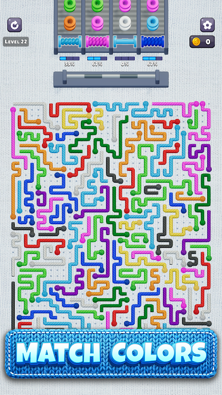 Chaque puzzle est conçu avec soin pour tester votre logique, votre planification et votre capacité à résoudre des problèmes. Les fils ne changent jamais de couleur, des chemins peuvent être bloqués et chaque mouvement compte. Une seule erreur peut bloquer le plateau, mais la solution idéale existe toujours.