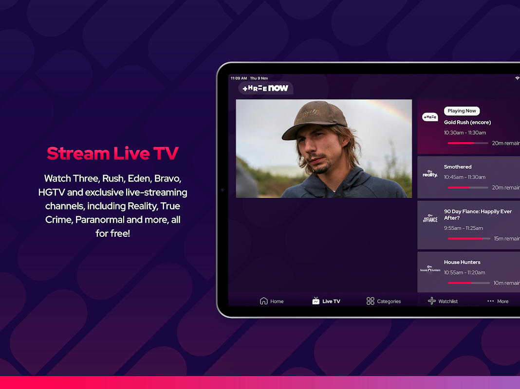 ThreeNow a été mis à jour et amélioré ! Comme toujours, vous pouvez trouver vos émissions de télévision préférées de Three, Rush, Eden, Bravo et HGTV - ainsi que des émissions exclusives de ThreeNow que vous ne trouverez sur aucun autre service de streaming en Nouvelle-Zélande. Et maintenant, nous proposons également de toutes nouvelles chaînes, notamment Reality, True Crime, Paranormal et bien d'autres, le tout gratuitement !