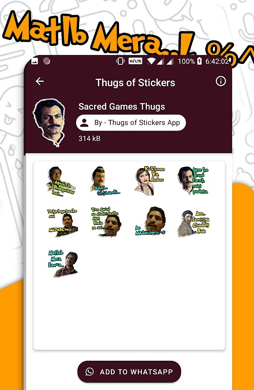 So here we created the awesome and colourful Thugs of Stickers app which contains the various funny addictive dialogues sticker pack for whatsapp ,