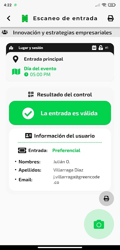 * AUCUNE LIGNE OCCUPÉE : validez rapidement les billets des participants en scannant le code QR avec l'appareil photo de votre appareil. Vous pouvez enregistrer l'entrée ou la sortie des participants très facilement.