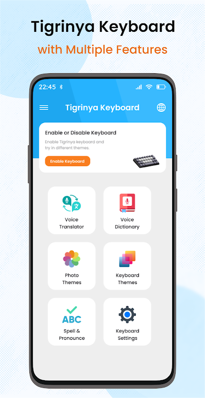 Vous pouvez désormais taper facilement un message en langue tigrinya avec l'application de clavier de saisie Tigrinya. Libérez la puissance de la langue tigrinya sur votre appareil mobile avec notre application clavier Tigrinya. Que vous soyez un locuteur natif du tigrinya, un passionné de langues ou que vous cherchiez simplement à élargir vos horizons linguistiques, notre application est conçue pour améliorer votre communication numérique dans l'écriture tigrinya magnifiquement riche.