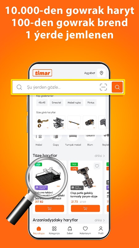 Timar - mebel aksessuarlary marketi Onlaýn söwdany, indi mobil android goşundy görnüşde hem ýola goýdy.