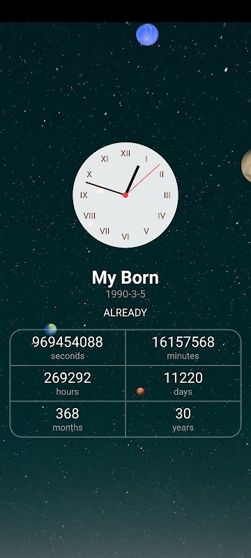 Lorsque vous définissez votre anniversaire, l'APP peut estimer le temps que vous vivez, les données sont précises et l'atmosphère est cool.