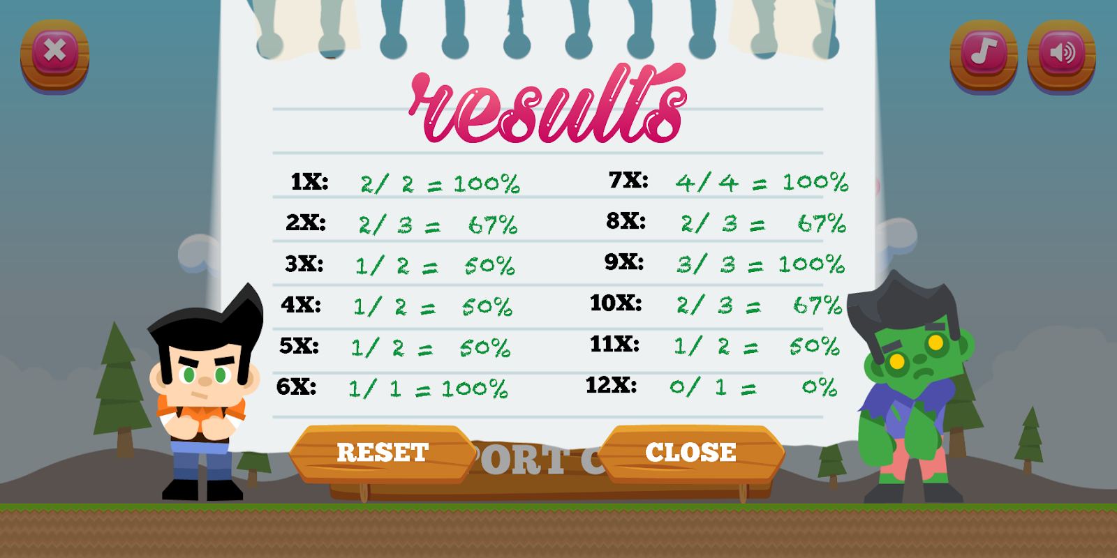 After each round you get a report card showing you how well you did.
