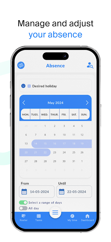• Vous pouvez accéder à votre horaire de travail où que vous soyez et vous avez un aperçu de vos vacances, des congés compensatoires, des horaires flexibles, des heures de travail accumulées et de votre salaire.
