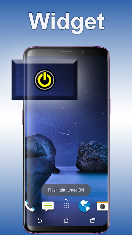 You can create widget of flashlight 2020 on the home screen. To create widget you have to press on the home screen and a widget bar will be appeared on the lower bottom of the screen. Select flashlight widget and place it on the home screen. You don’t need to open app to turn on or off the flashlight. Simply click on the flashlight widget to turn it on or off.