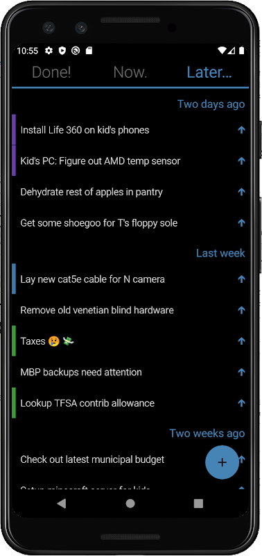 Vous avez des tâches à faire MAINTENANT, des tâches à faire PLUS TARD et des tâches que vous avez FAITES.