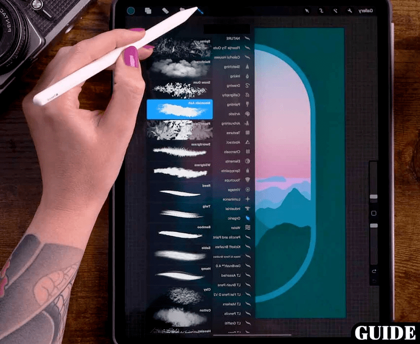 - Procreate Sketch utilizing Procreate Paint chief sketching cushion instruments with the assistance of pencil, pen, water covering, fill holder and assorted others.