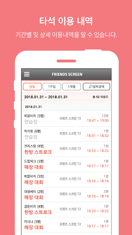 ■ 타석의 이용내역을 원하는 조건에 맞게 확인 할 수 있습니다.