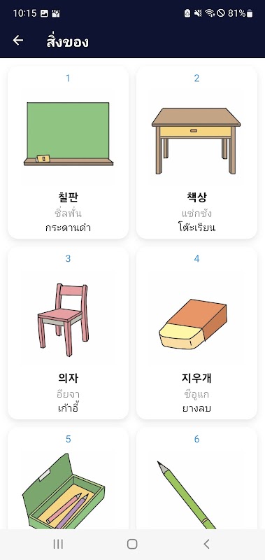 ✅ Vocabulaire avec prononciation et traduction en thaï