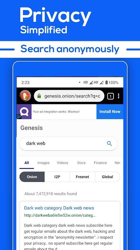 ✔ Genesis, DuckDuckGo and Google search engine integrated.