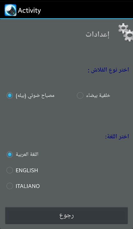 Application Albalh - lampe de projecteur / Scouts / flash / manuel pour le fonctionnement du dispositif flash de l'appareil.