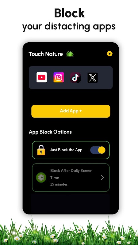 Touchez Grass Réduisez le temps d'écran en bloquant les distractions jusqu'à ce que vous touchiez Grass