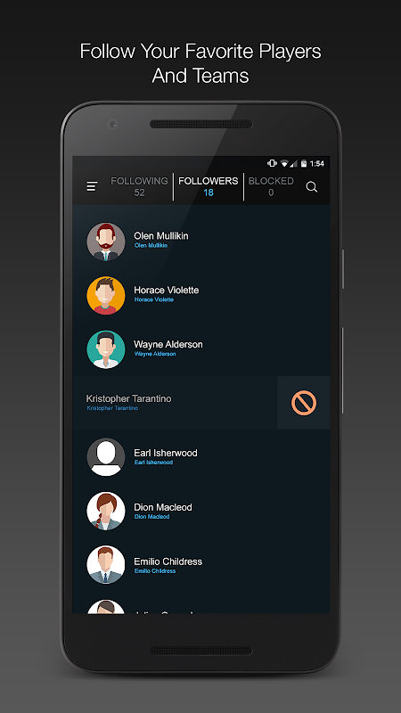 - Suivez vos joueurs préférés et ne ratez jamais leur match ou ce qu'ils ont accompli.
