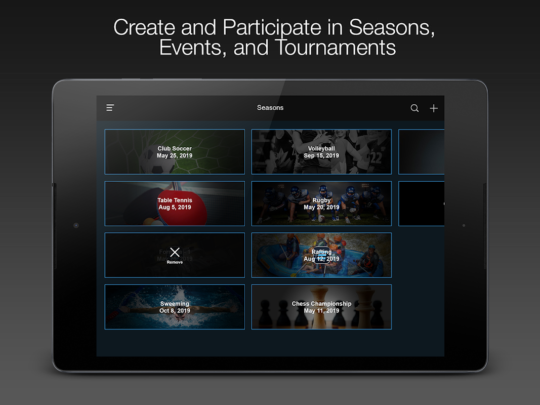 - Créer, participer et suivre des tournois, des événements, des saisons ou des équipes