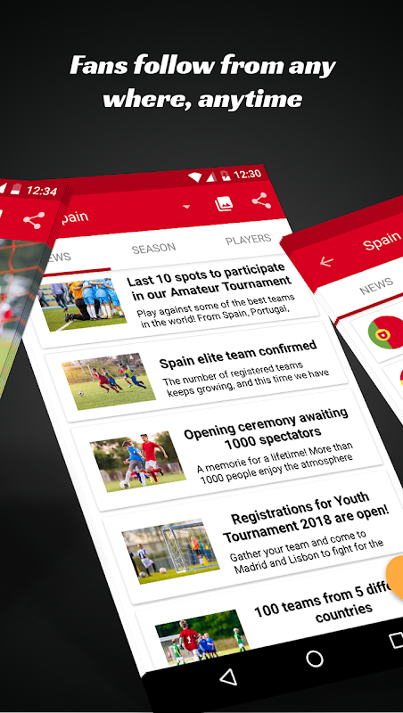 Vous pouvez suivre les ligues de football, de basket-ball, de volley-ball et d'autres sports et eSports et recevoir notifications mobiles avec les résultats des matchs et des équipes . Consultez les actualités, photos et vidéos de vos championnats préférés.