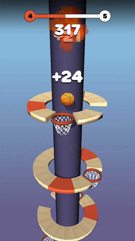 Faites rebondir le ballon de basket et dunk chaque cerceau comme un pro. Marquez des paniers pour obtenir des points supplémentaires et déverrouiller la boule de feu !