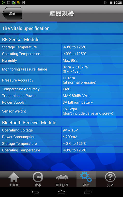 - smartphone / tablette quatre surveillance en temps réel la pression des pneus.