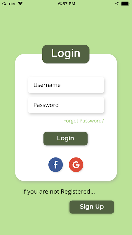 2. L'utilisateur peut se connecter à l'application en fournissant son nom d'utilisateur et son mot de passe suivi d'un mot de passe oublié et du bouton d'inscription.