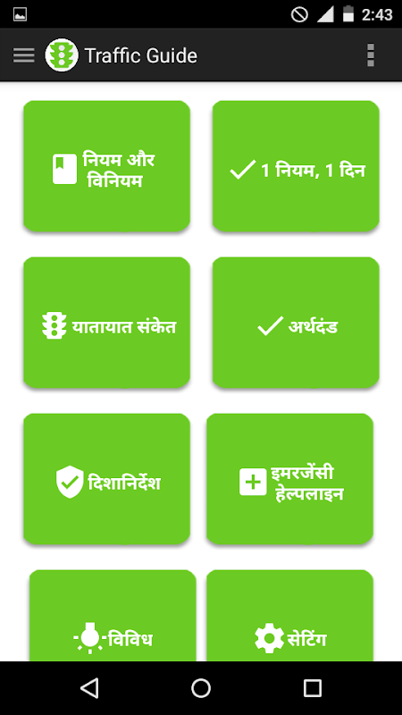 This app works on the concept of One rule in one day. Though user can view all the rules at once, but if you learn one rule one day and practice it, soon you will be following all traffic rules without problem, and as a result problems related to traffic will be minimized.