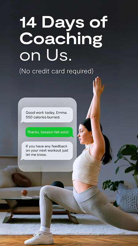 Profitez de 14 jours de coaching humain gratuit. Aucune carte de crédit requise. Après votre période d'essai, poursuivez avec un coach si vous êtes satisfait(e), ou conservez l'application gratuitement avec le suivi nutritionnel, l'enregistrement de vos entraînements et les photos de votre progression. Sans engagement. Sans frais cachés.