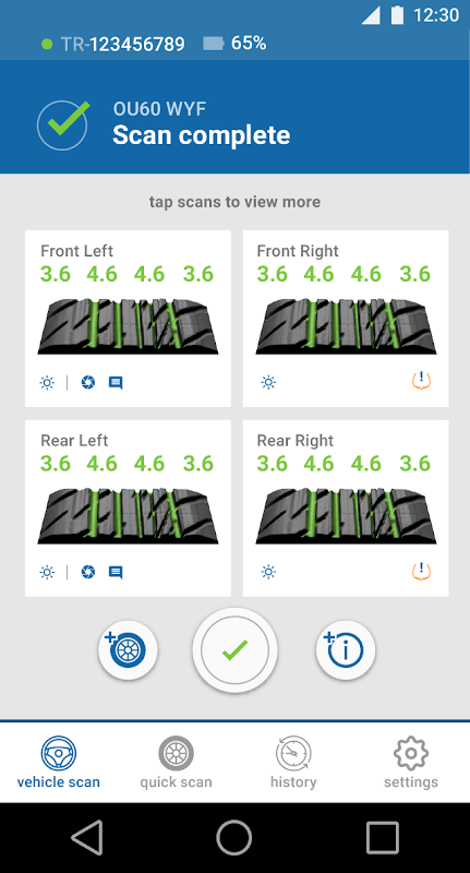 This App developed by Sigmavision Ltd controls the TreadReader Hand Held Scanner. Intuitive screens guide the users through single tyre scan, full vehicle scan, creating a PDF Summary Report and App Set Up.