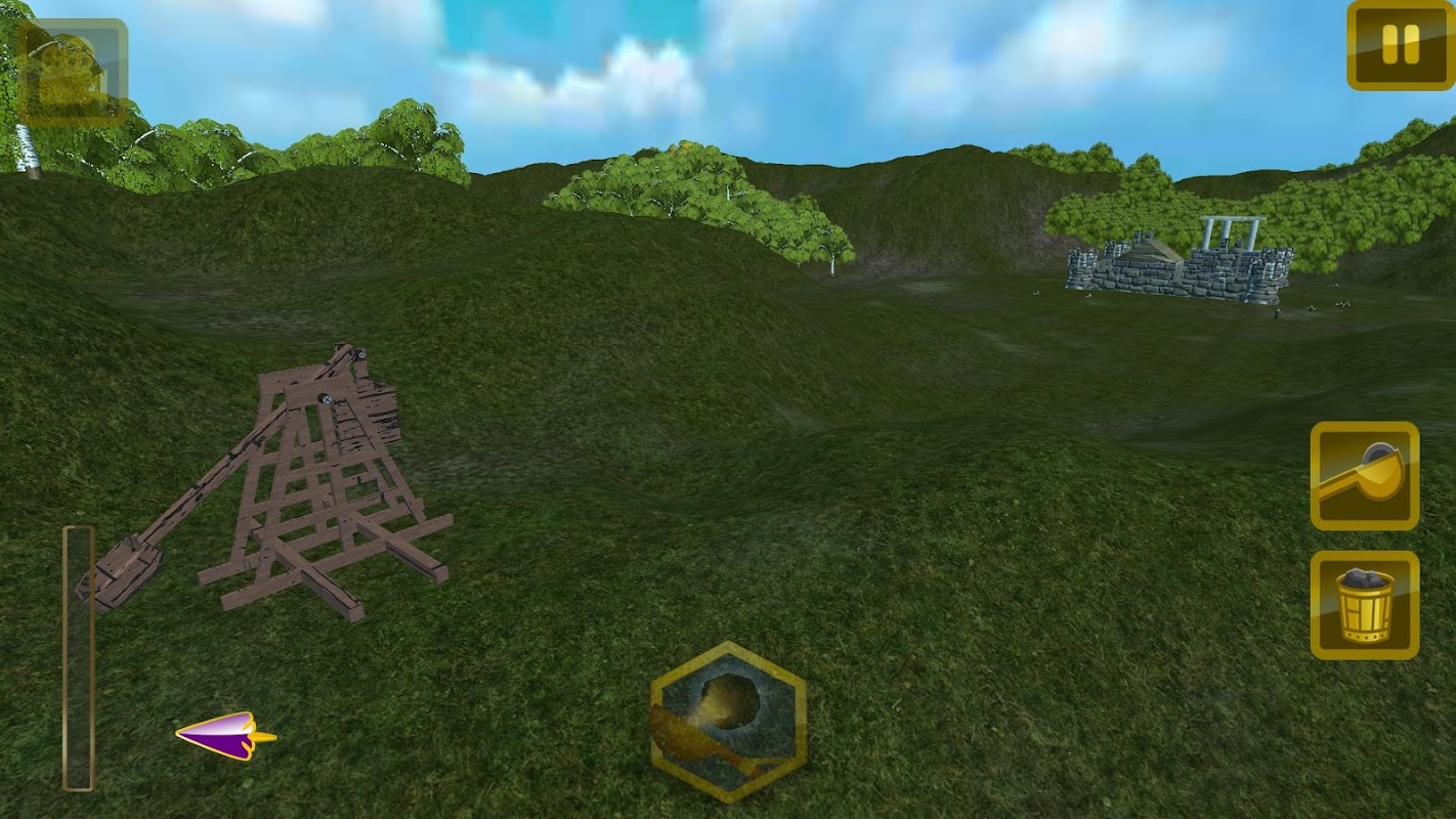 Play the game in VR with any Cardboard headset. Watch out on the environment, wind speed, control of the 10m tall Trebuchet and smash the castle down to smithereens !