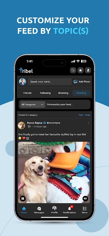 Tribel est le réseau social PLUS INTELLIGENT où vos publications atteignent immédiatement le bon public, vous obtenez enfin la reconnaissance que vous méritez parce que les likes signifient réellement quelque chose, et vous pouvez personnaliser votre fil d'actualités pour trouver facilement les publications les plus récentes et les plus tendances QUE VOUS voulez QUAND vous les voulez — dans n'importe quel sujet.