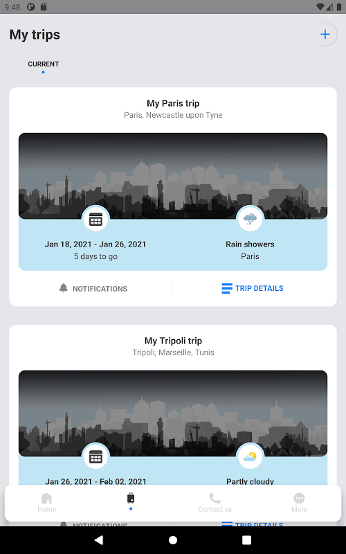 Recherchez des emplacements à votre destination, obtenez les dernières mises à jour météorologiques et restez au courant de tous les aspects de votre voyage. Besoin de contacter votre agence de voyage? Il vous suffit de cliquer pour appeler pour bénéficier du meilleur support à tout moment de votre voyage.